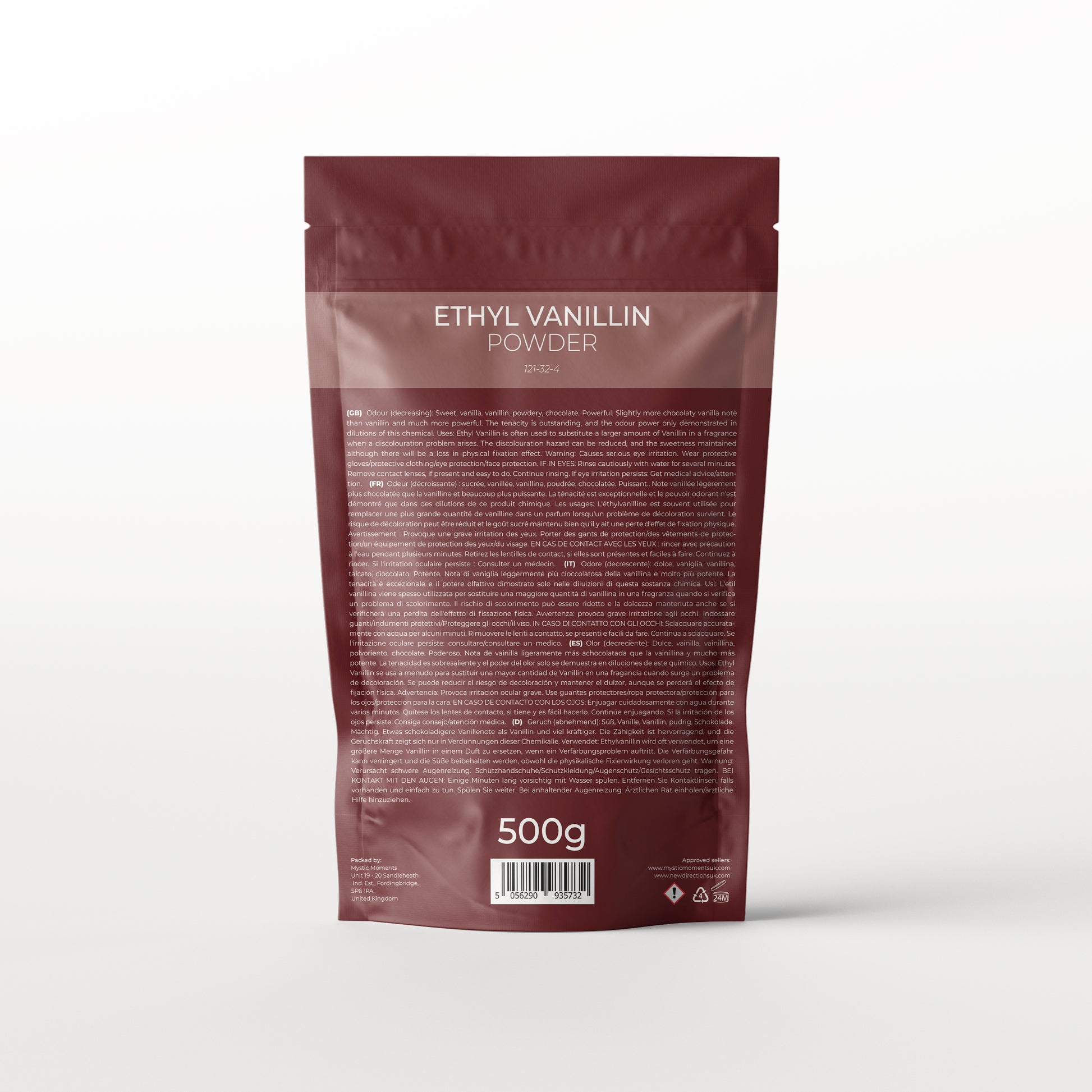 Slightly more chocolaty vanilla note than vanillin and much more powerful. The tenacity is outstanding, and the odour power only demonstrated in dilutions of this chemical.