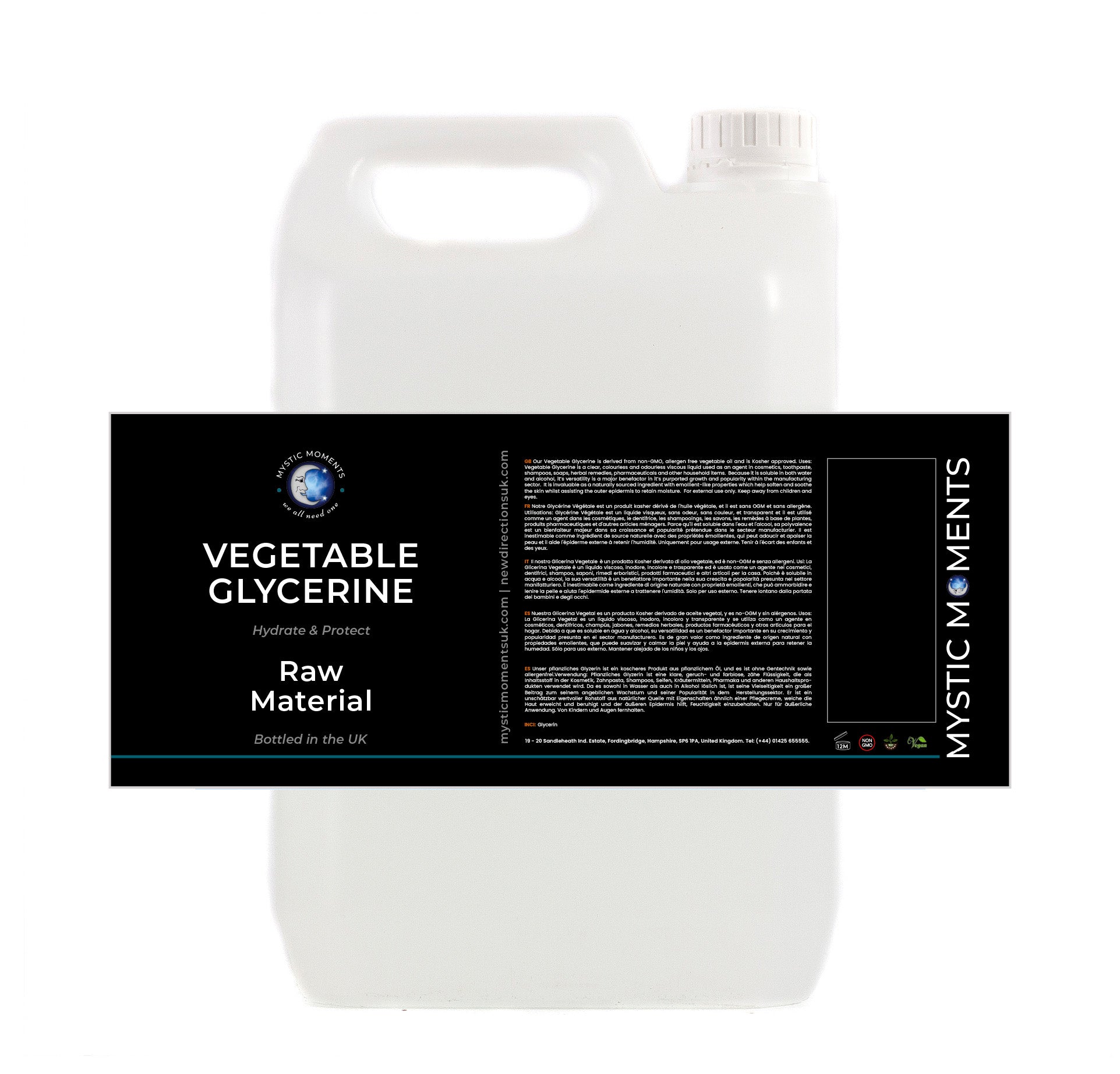 Our Vegetable Glycerine is a Kosher product derived from vegetable oil, and it is GMO-free and allergen-free. Glycerine is the result of a sophisticated extraction method called hydrolysis. This system is based on the fats and oils of a raw product, that are then split into crude glycerol fats, under the combined action of water, temperature and pressure. These temperatures can exceed 400 degrees and the material is usually kept under pressure for 20-30 minutes. What is actually occurring is a sort of counter-flow where the water absorbs glycerol from the fatty acid phase of the oil production. After this phase this glycerol is isolated and further distilled to give buyers a standard 99% Glycerine product (our Glycerine is actually 99.5%).