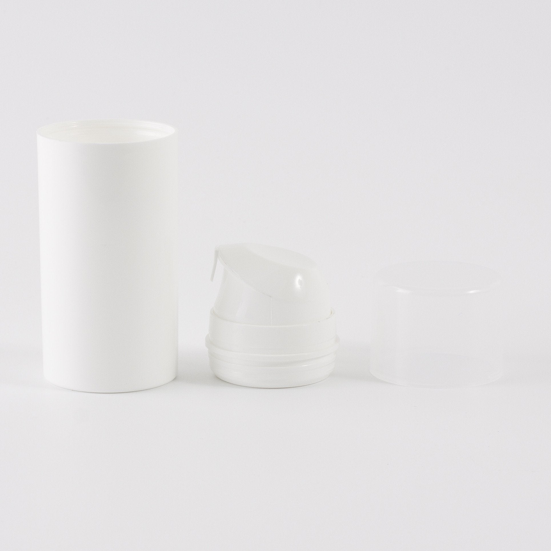 Penguin White Airless Dispenser 100ml, standard head smooth white, overcap transparent