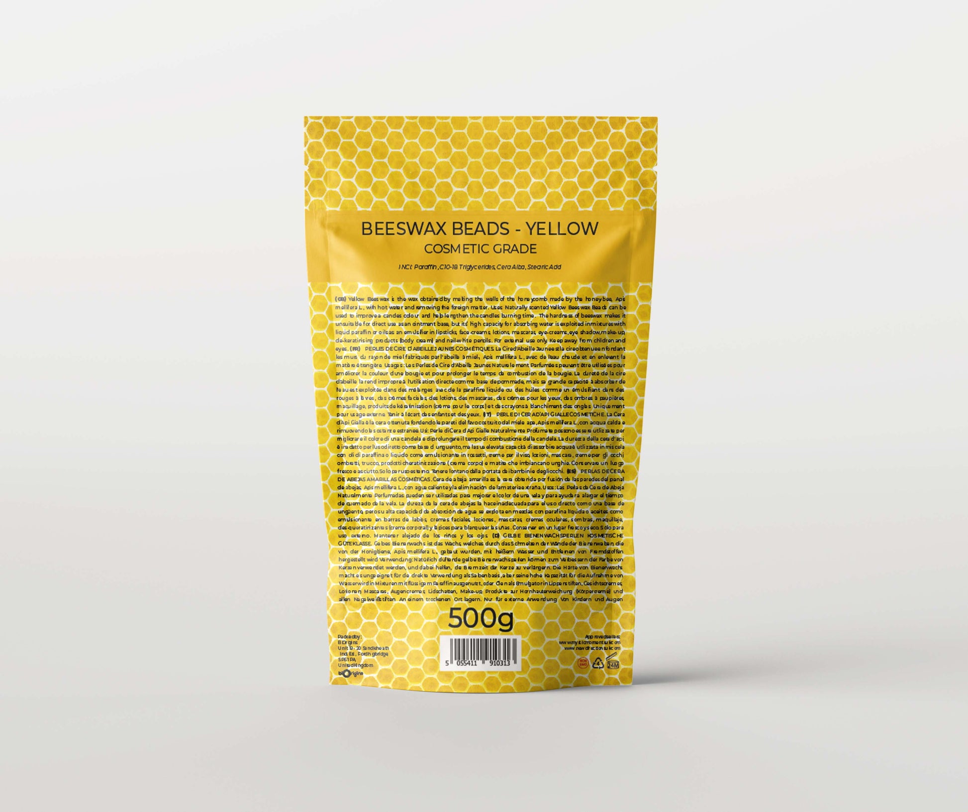 Uses: Naturally scented Yellow Beeswax Beads can be used to improve a candle's colour and help lengthen the candle's burning time. The hardness of beeswax makes it unsuitable for direct use as an ointment base, but its high capacity for absorbing water is exploited in mixtures with liquid paraffin or oils as an emulsifier in lipsticks, face-creams, lotions, mascaras, eye-creams, eye shadow, make-up, de-keratinising products (body cream) and nail-white pencils.